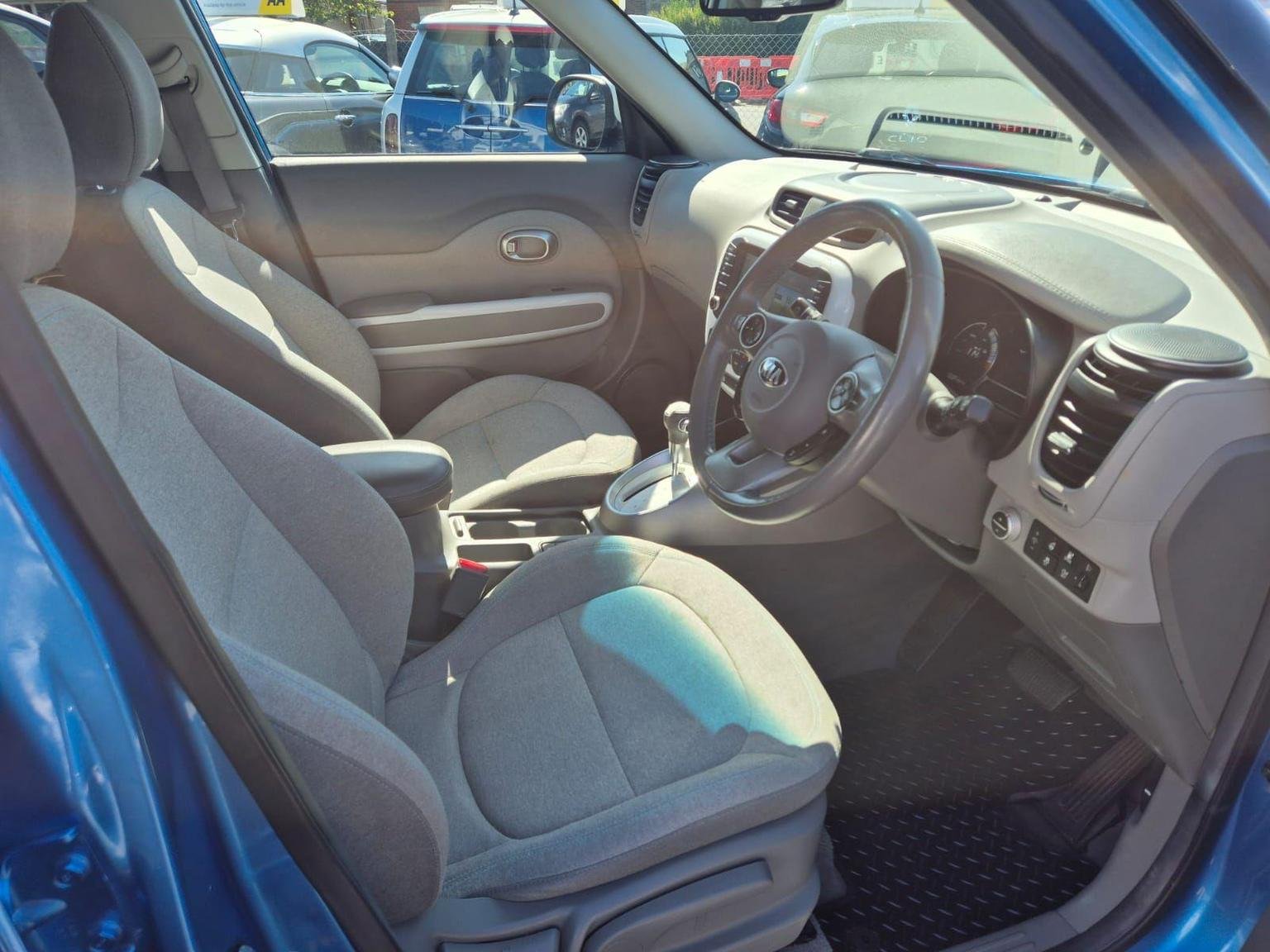 Front Centre Armrest with Blue Stitching and Storage Box